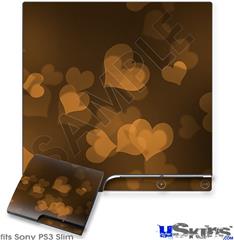 Decal Skin compatible with Sony PS3 Slim Bokeh Hearts Orange