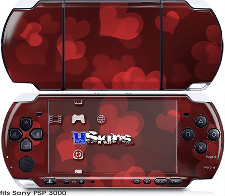 Sony PSP 3000 Skin - Bokeh Hearts Red