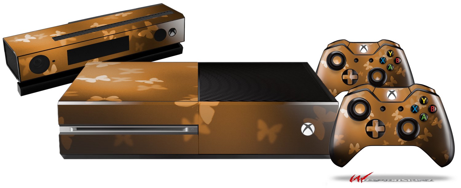 Bokeh Butterflies Orange - Holiday Bundle Decal Style Skin fits XBOX One Console Original, Kinect and 2 Controllers (XBOX SYSTEM NOT INCLUDED)