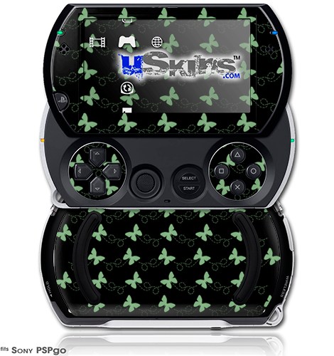 Pastel Butterflies Green on Black - Decal Style Skins (fits Sony PSPgo)