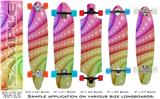 Our longboard skins are made so that one size fits boards up to 10” wide x 42” long. This means after applying the skin it you will trimming to fit you’re the shape of your board with a sharp utility knife.