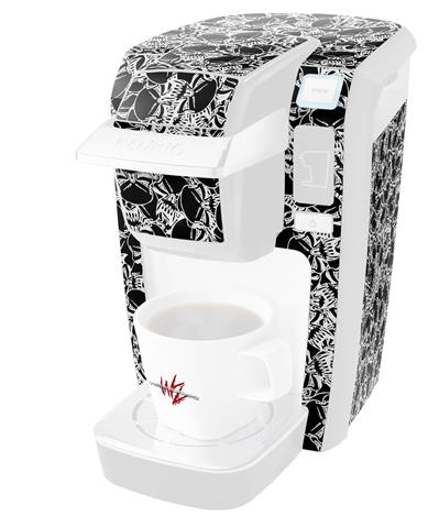 Decal Style Vinyl Skin compatible with Keurig K10 / K15 Mini Plus Coffee Makers Scattered Skulls Black (KEURIG NOT INCLUDED)