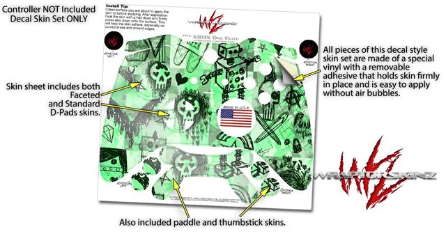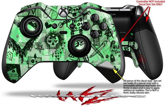 Scene Kid Sketches Green - Decal Style Skin fits Microsoft XBOX One ELITE Wireless Controller