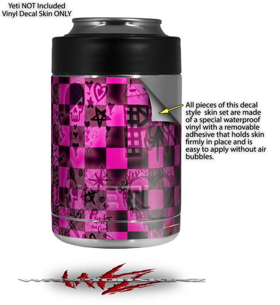 Skin Decal Wrap for Yeti Colster, Ozark Trail and RTIC Can Coolers - Pink Checkerboard Sketches (COOLER NOT INCLUDED)