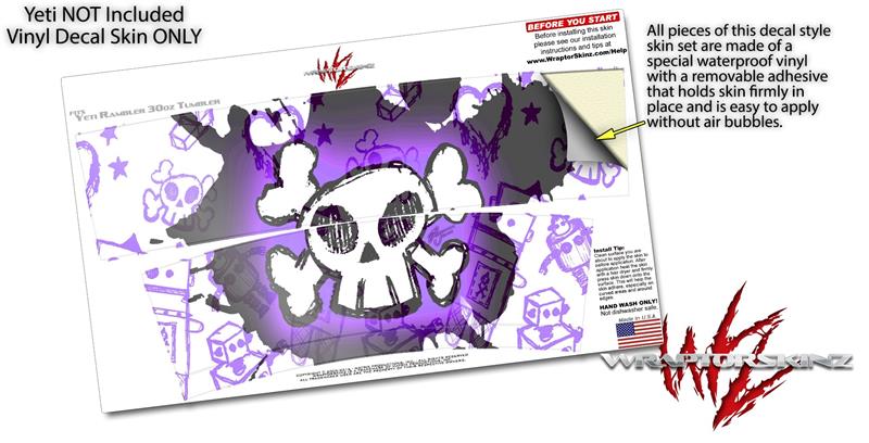 Skin Decal Wrap for Yeti Tumbler Rambler 30 oz Cartoon Skull Purple (TUMBLER NOT INCLUDED)