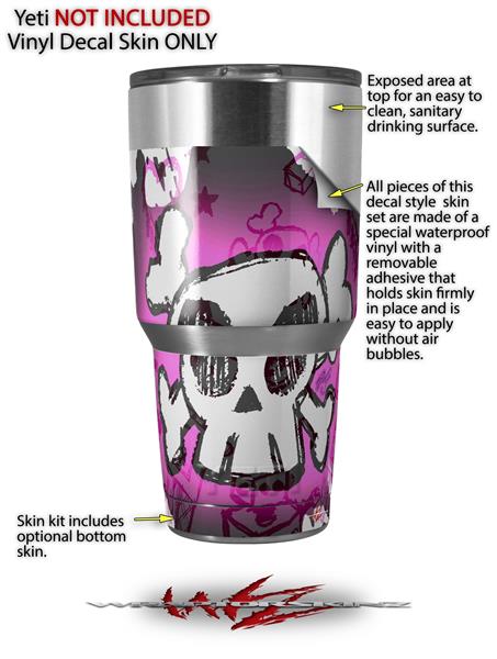 Skin Decal Wrap for Yeti Tumbler Rambler 30 oz Cartoon Skull Pink (TUMBLER NOT INCLUDED)