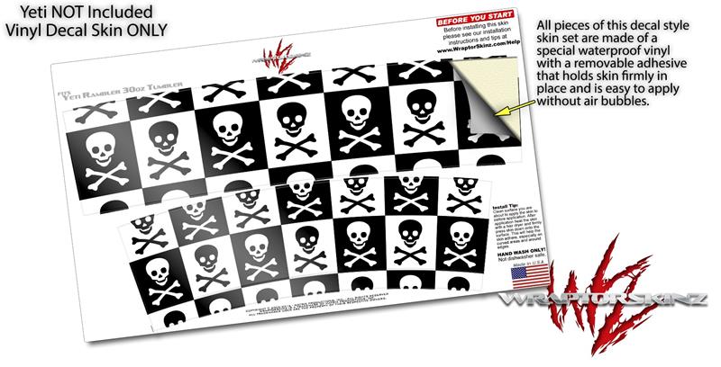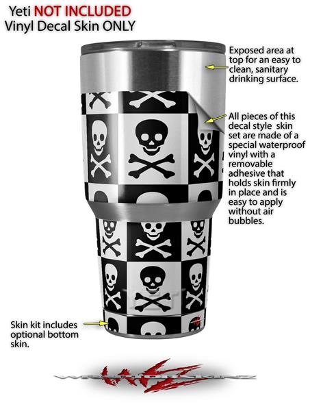 Skin Decal Wrap for Yeti Tumbler Rambler 30 oz Skull Checkerboard (TUMBLER NOT INCLUDED)