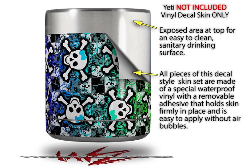 Skin Decal Wrap for Yeti Rambler Lowball - Splatter Girly Skull Rainbow
