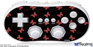 Wii Classic Controller Skin - Pastel Butterflies Red on Black