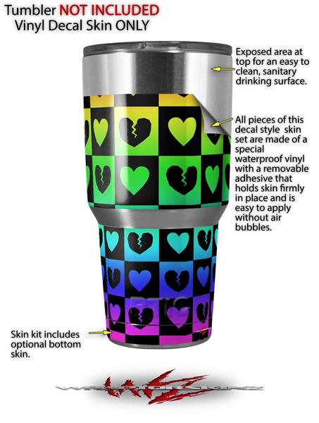 WraptorSkinz Skin Wrap compatible with RTIC 30oz ORIGINAL 2017 AND OLDER Tumblers Love Heart Checkers Rainbow (TUMBLER NOT INCLUDED)