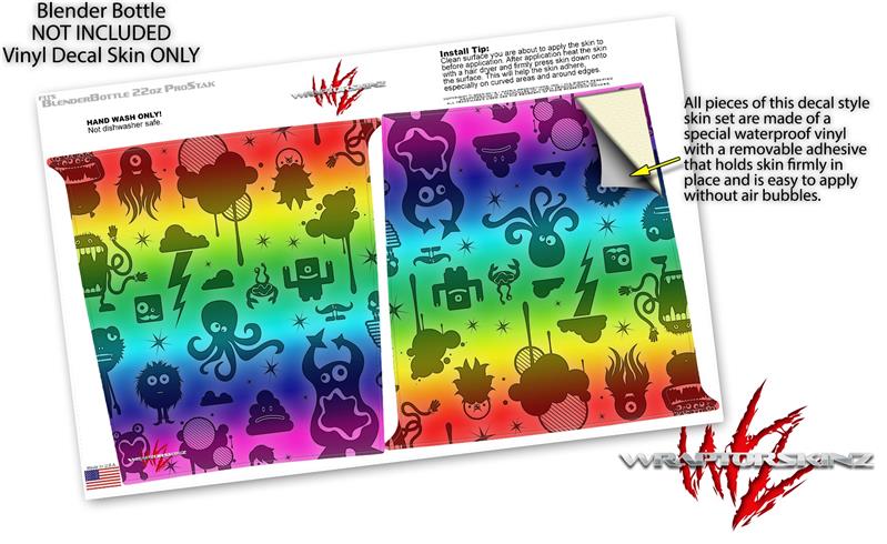 Decal Style Skin Wrap works with Blender Bottle 22oz ProStak Cute Rainbow Monsters (BOTTLE NOT INCLUDED)