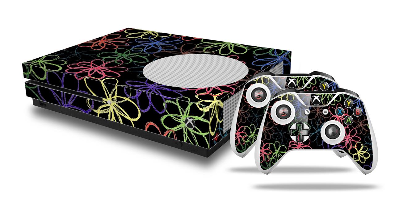 WraptorSkinz Decal Skin Wrap Set works with 2016 and newer XBOX One S Console and 2 Controllers Kearas Flowers on Black