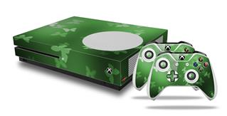 WraptorSkinz Decal Skin Wrap Set works with 2016 and newer XBOX One S Console and 2 Controllers Bokeh Butterflies Green