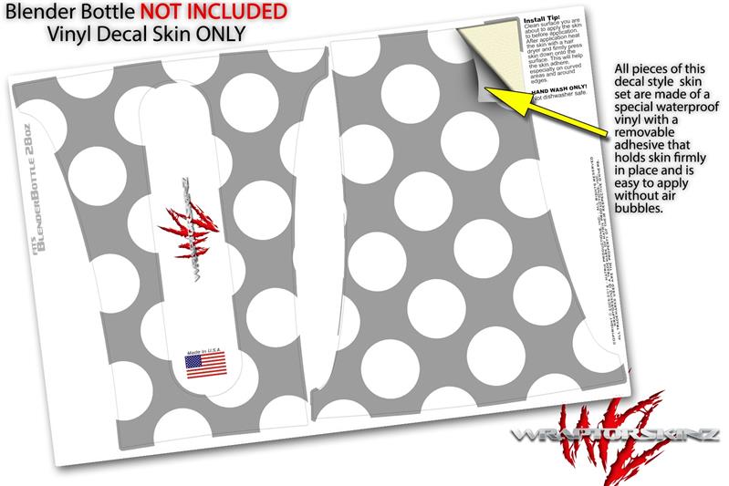 Decal Style Skin Wrap works with Blender Bottle 28oz Kearas Polka Dots Whtie On Gray (BOTTLE NOT INCLUDED)