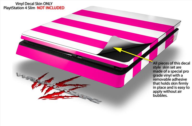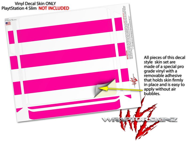 Vinyl Decal Skin Wrap compatible with Sony PlayStation 4 Slim Console Psycho Stripes Hot Pink and White (PS4 NOT INCLUDED)