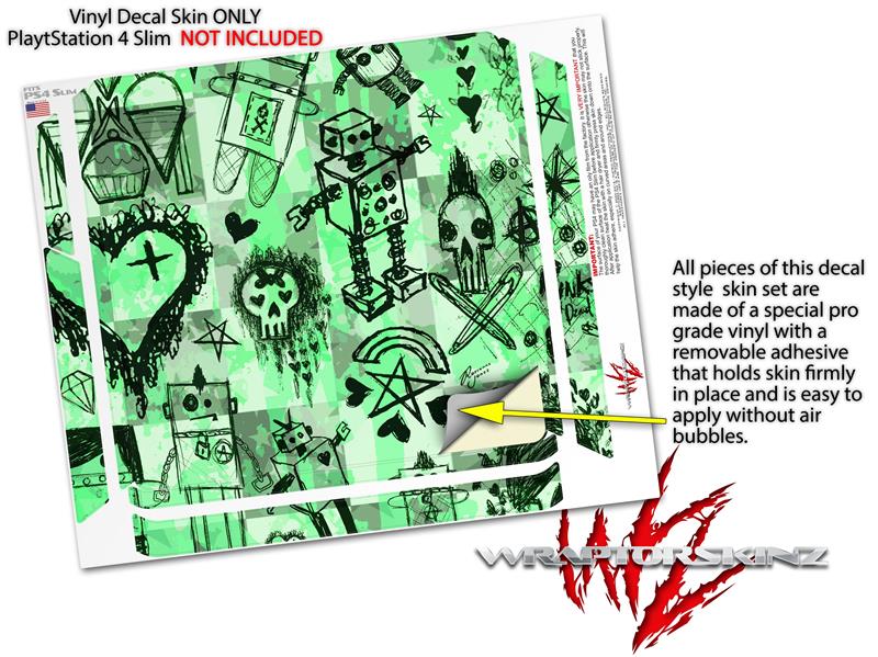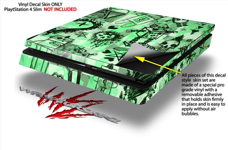 Vinyl Decal Skin Wrap compatible with Sony PlayStation 4 Slim Console Scene Kid Sketches Green (PS4 NOT INCLUDED)