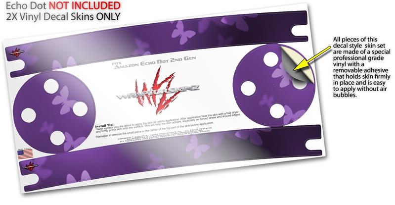 Skin Wrap Decal Set 2 Pack for Amazon Echo Dot 2 - Bokeh Butterflies Purple (2nd Generation ONLY - Echo NOT INCLUDED)