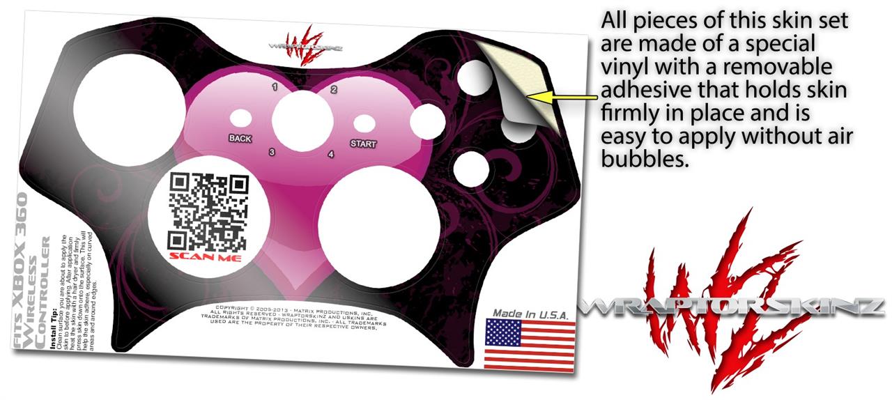 XBOX 360 Wireless Controller Decal Style Skin - Glass Heart Grunge Hot Pink (CONTROLLER NOT INCLUDED)