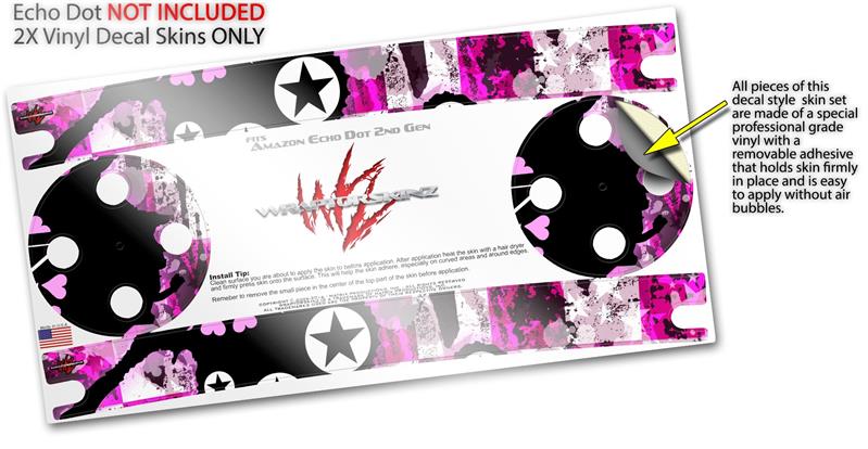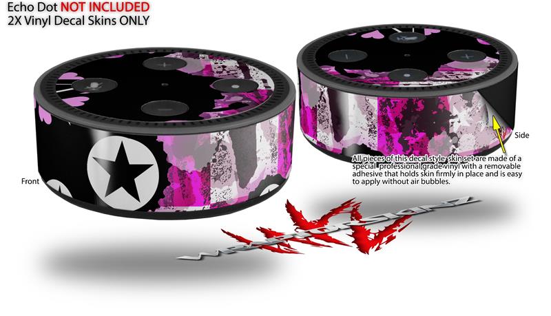 Skin Wrap Decal Set 2 Pack for Amazon Echo Dot 2 - Pink Star Splatter (2nd Generation ONLY - Echo NOT INCLUDED)