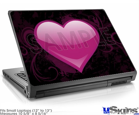 Laptop Skin (Small) - Glass Heart Grunge Hot Pink