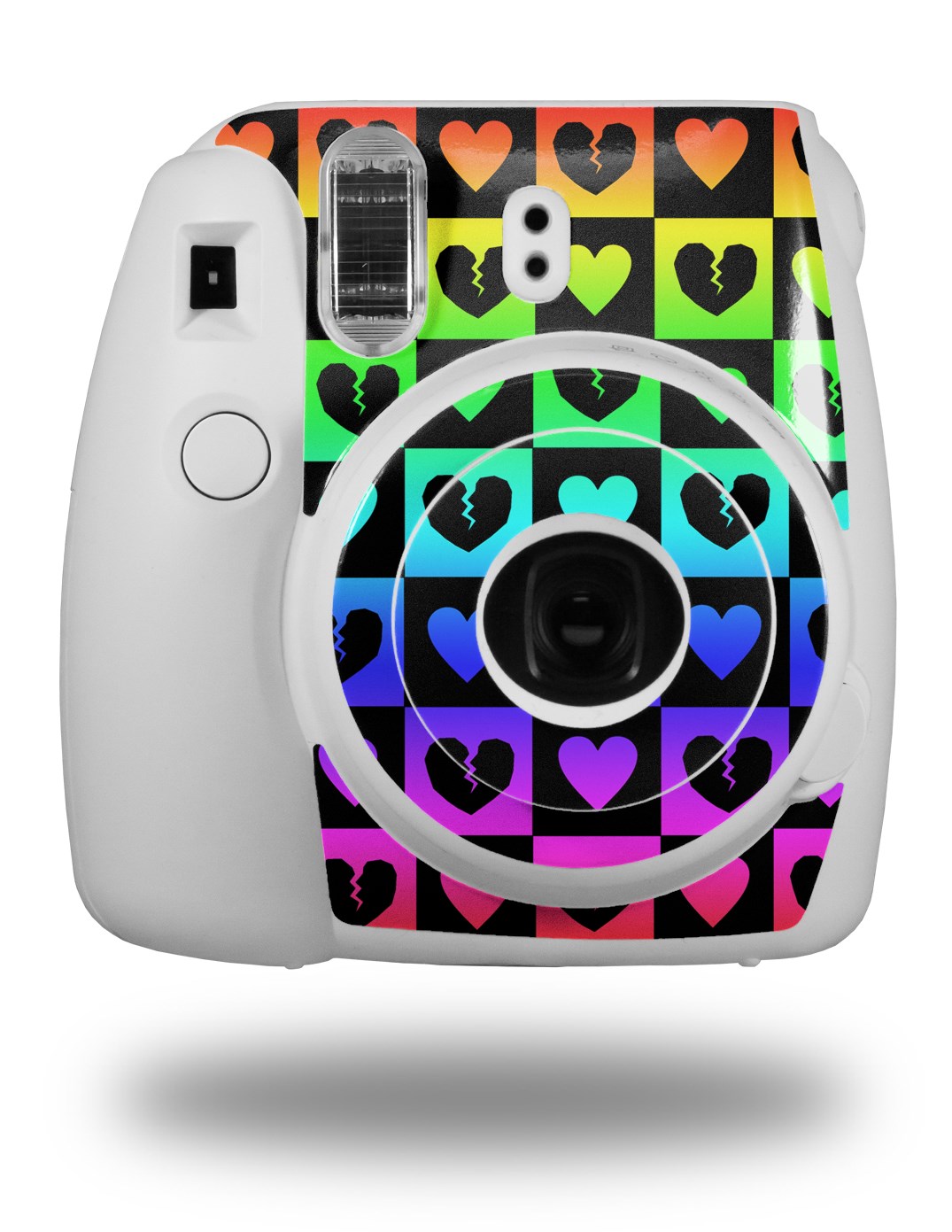 WraptorSkinz Skin Decal Wrap compatible with Fujifilm Mini 8 Camera Love Heart Checkers Rainbow (CAMERA NOT INCLUDED)