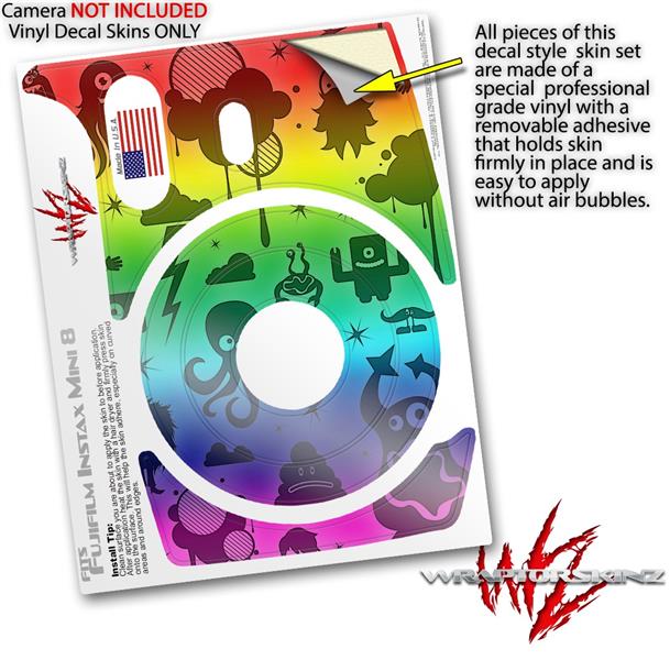 WraptorSkinz Skin Decal Wrap compatible with Fujifilm Mini 8 Camera Cute Rainbow Monsters (CAMERA NOT INCLUDED)