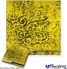 Decal Skin compatible with Sony PS3 Slim Folder Doodles Yellow