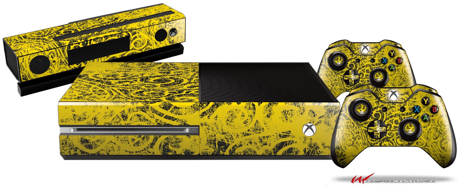 Folder Doodles Yellow - Holiday Bundle Decal Style Skin fits XBOX One Console Original, Kinect and 2 Controllers (XBOX SYSTEM NOT INCLUDED)