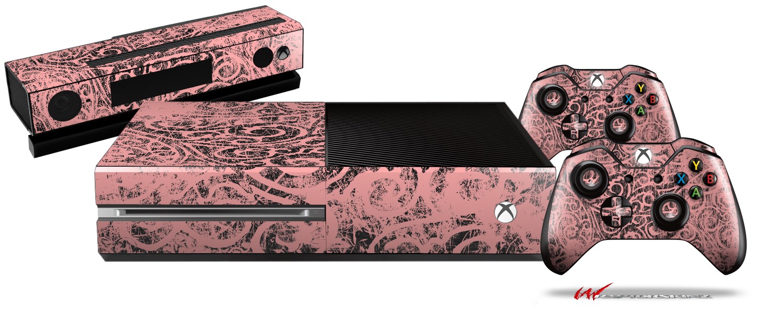 Folder Doodles Pink - Holiday Bundle Decal Style Skin fits XBOX One Console Original, Kinect and 2 Controllers (XBOX SYSTEM NOT INCLUDED)