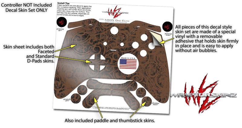 Folder Doodles Chocolate Brown - Decal Style Skin fits Microsoft XBOX One ELITE Wireless Controller