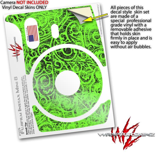 WraptorSkinz Skin Decal Wrap compatible with Fujifilm Mini 8 Camera Folder Doodles Neon Green (CAMERA NOT INCLUDED)
