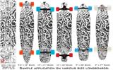 Our longboard skins are made so that one size fits boards up to 10” wide x 42” long. This means after applying the skin it you will trimming to fit you’re the shape of your board with a sharp utility knife.