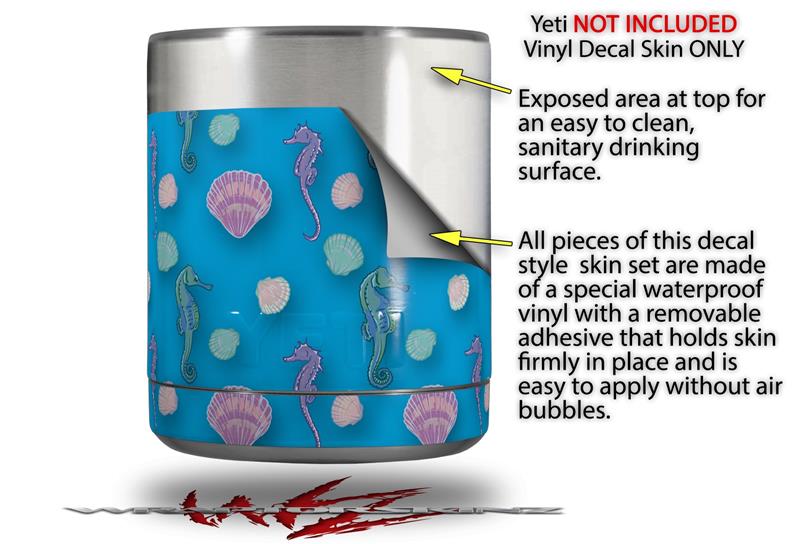 Skin Decal Wrap for Yeti Rambler Lowball - Seahorses and Shells Blue Medium