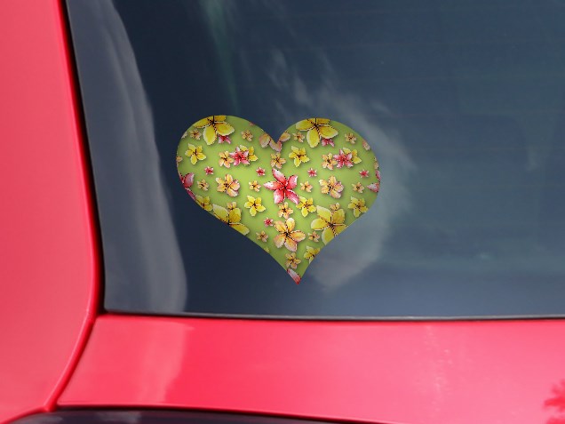 Beach Flowers Sage Green - I Heart Love Car Window Decal 6.5 x 5.5 inches