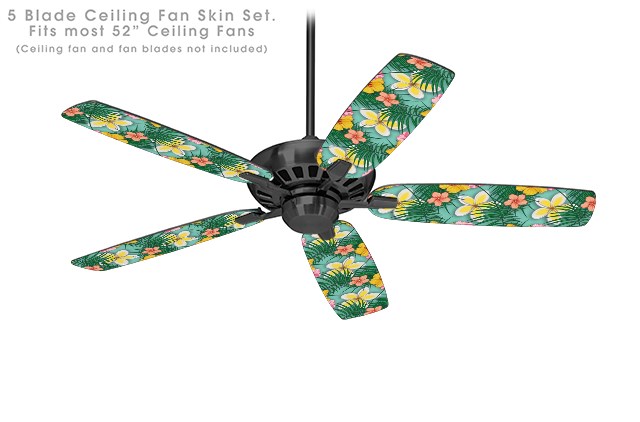 Beach Flowers 02 Seafoam Green - Ceiling Fan Skin Kit fits most 52 inch fans (FAN and BLADES SOLD SEPARATELY)