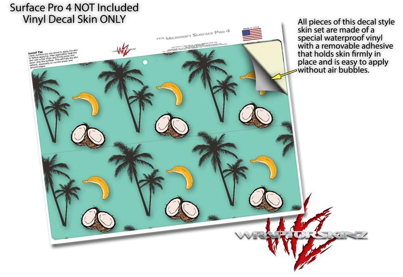 Coconuts Palm Trees and Bananas Seafoam Green - Decal Style Vinyl Skin fits Microsoft Surface Pro 4 (SURFACE NOT INCLUDED)
