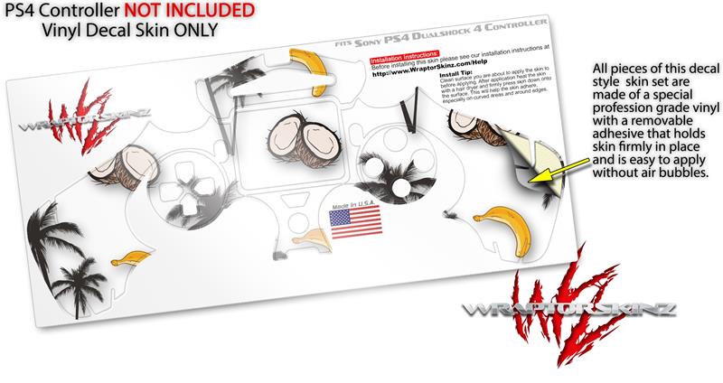 WraptorSkinz Skin compatible with Sony PS4 Dualshock Controller PlayStation 4 Original Slim and Pro Coconuts Palm Trees and Bananas White (CONTROLLER NOT INCLUDED)