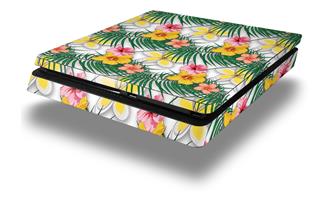 Vinyl Decal Skin Wrap compatible with Sony PlayStation 4 Slim Console Beach Flowers 02 White (PS4 NOT INCLUDED)