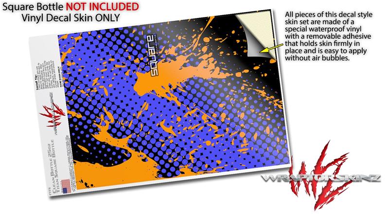 Skin Decal Wrap for Clean Bottle Square Titan Plastic 25oz Halftone Splatter Orange Blue (BOTTLE NOT INCLUDED)