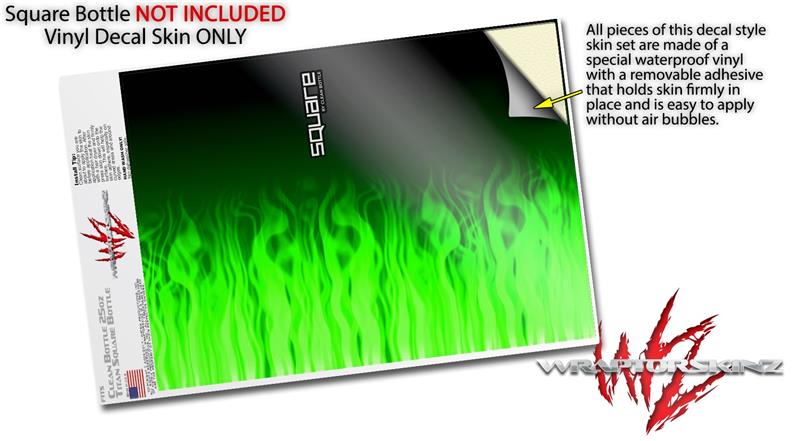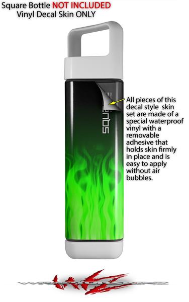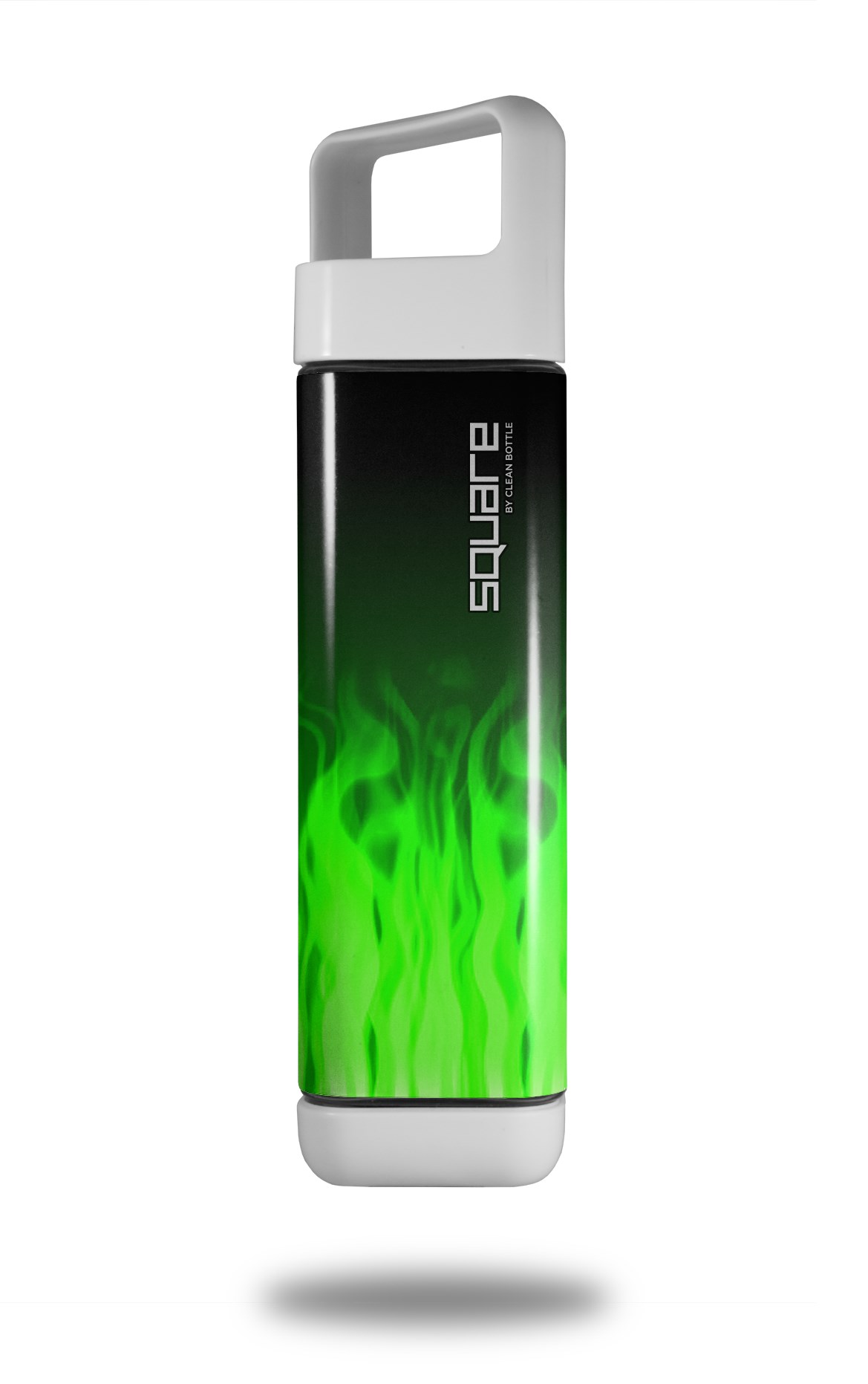 Skin Decal Wrap for Clean Bottle Square Titan Plastic 25oz Fire Flames Green (BOTTLE NOT INCLUDED)