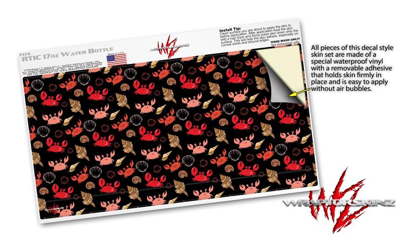 Skin Decal Wrap for RTIC Water Bottle 17oz Crabs and Shells Black (BOTTLE NOT INCLUDED)