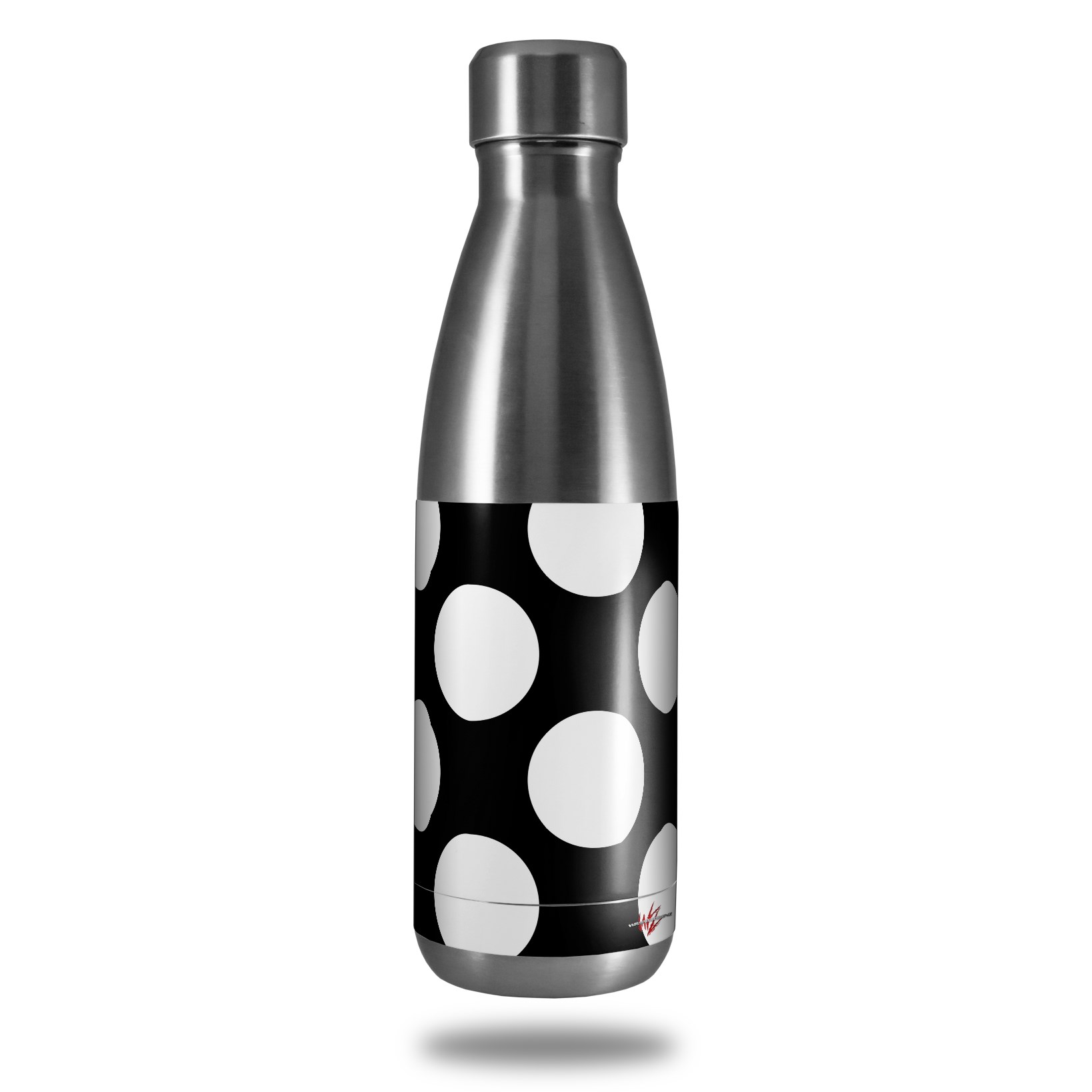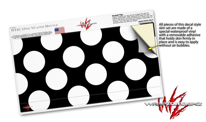 Skin Decal Wrap for RTIC Water Bottle 17oz Kearas Polka Dots White On Black (BOTTLE NOT INCLUDED)