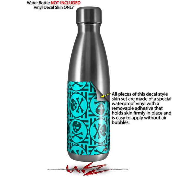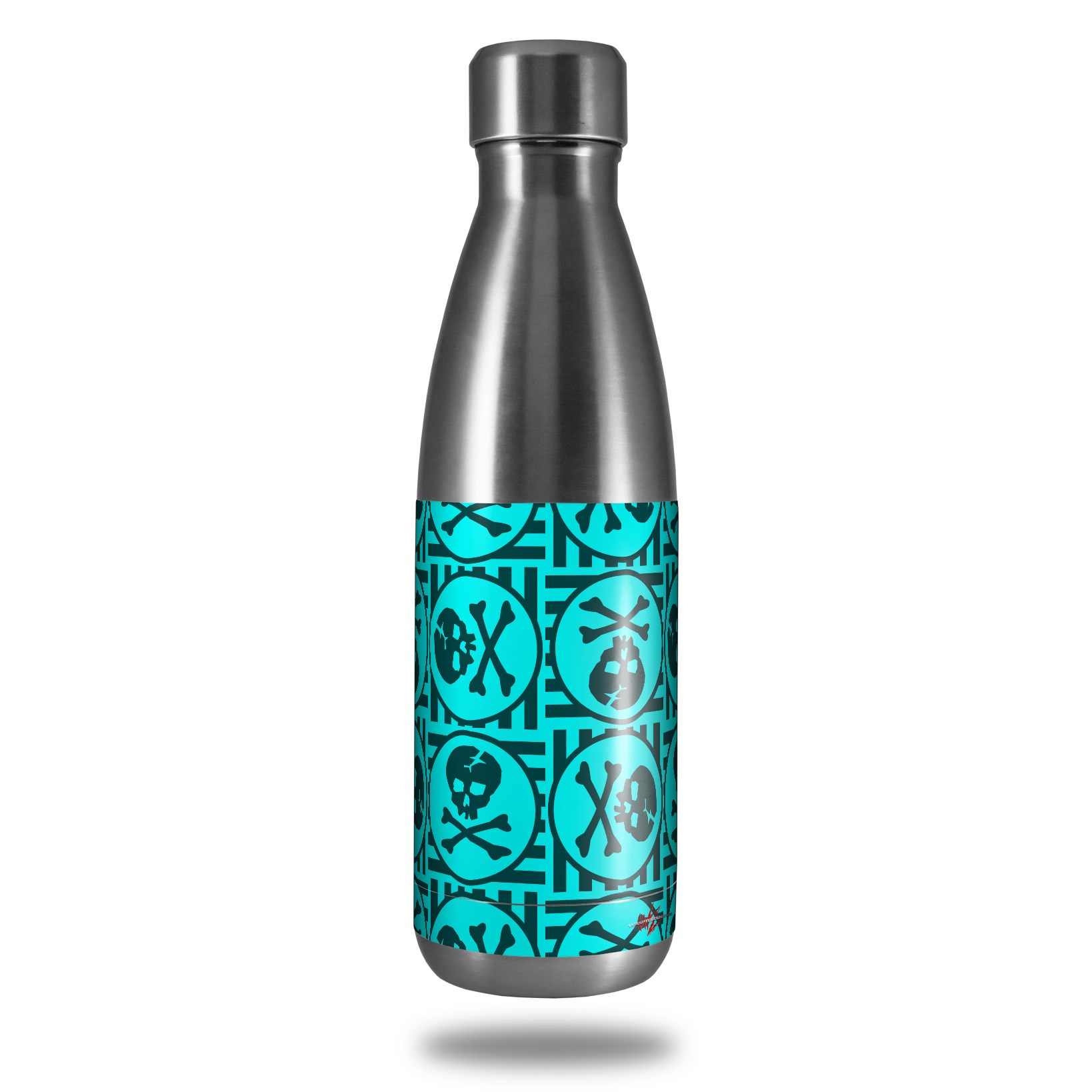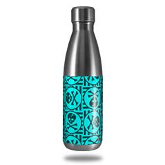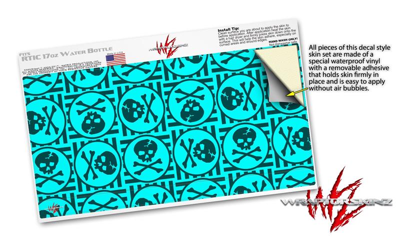 Skin Decal Wrap for RTIC Water Bottle 17oz Skull Patch Pattern Blue (BOTTLE NOT INCLUDED)