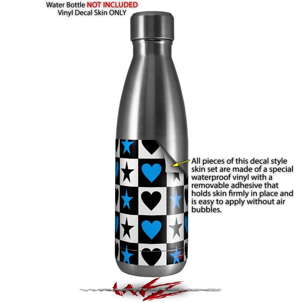 Skin Decal Wrap for RTIC Water Bottle 17oz Hearts And Stars Blue (BOTTLE NOT INCLUDED)