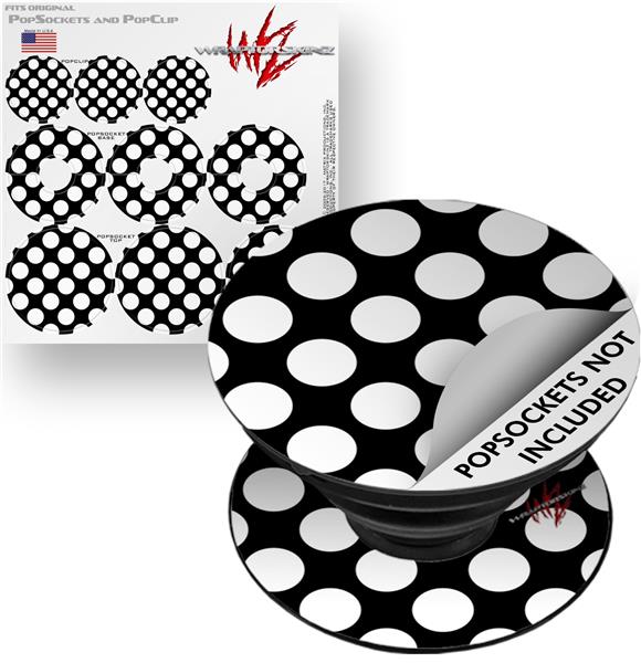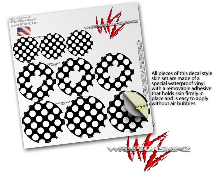 Decal Style Vinyl Skin Wrap 3 Pack for PopSockets Kearas Polka Dots White On Black (POPSOCKET NOT INCLUDED)